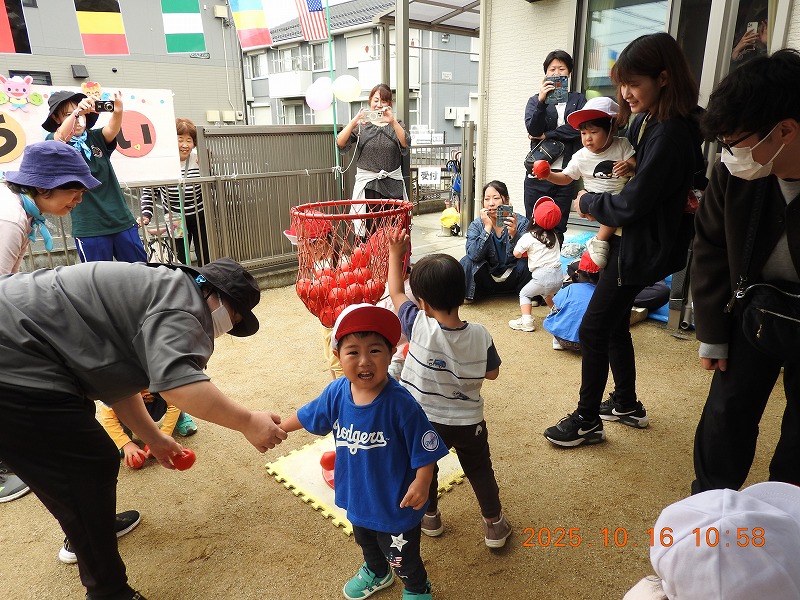 最後の玉入れでは全員が参加することができ、みんな楽しんで行うことができました。うんどう遊びを通して子どもたちの成長を感じられたのではないでしょうか。お忙しい中うんどう会にご参加くださりありがとうございました。保護者の皆さまのご協力により素晴らしい会になりました(^^♪