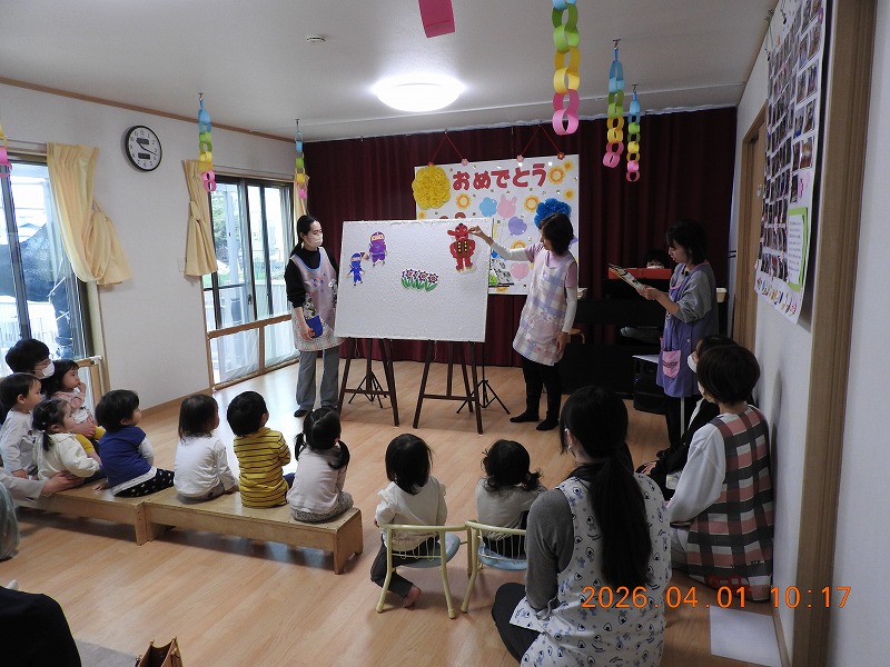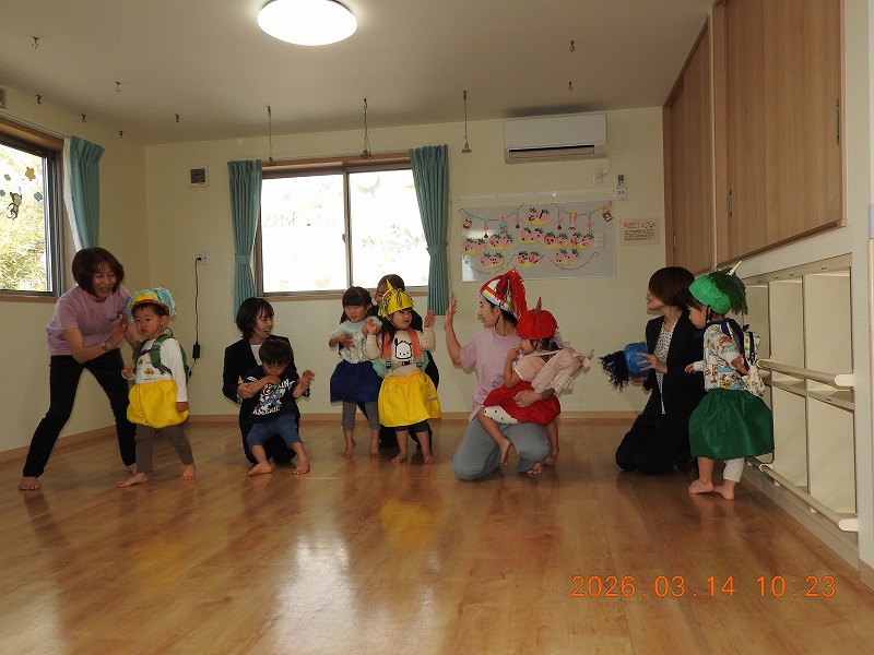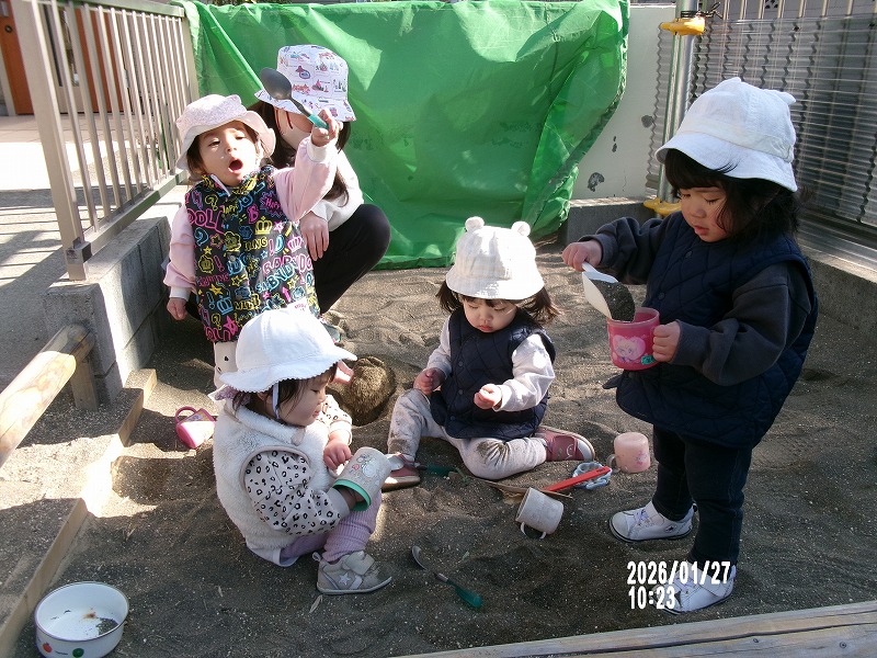 心身ともに健やかであるために、保育園の周りの田んぼや公園で自然に触れ合いながらの散歩をふんだんに取り入れ、水や砂遊び、絵本、手遊び、わらべうたなどの遊びの中で、情緒豊かな成長の手助けをしていきます。
