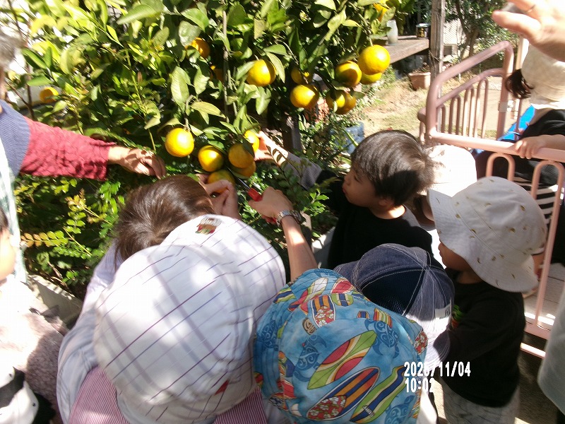 今日は、前 園長先生のお家に、みんなでみかん狩りに行きました。大きな木には、色づいたみかんがたわわに実っています。子ども...>続きを見る